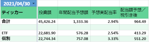 下の表はNISAを考慮していません。NISAを考慮すると税引き後 1,233 ドル/年となります。