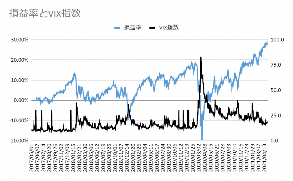 通常は、10から20の間で推移することが多いが、相場の先行きに大きな不安が生じた時には、この数値が大きく上昇するという傾向がある。