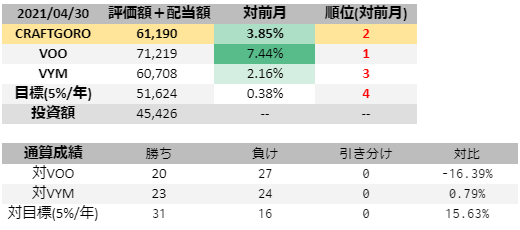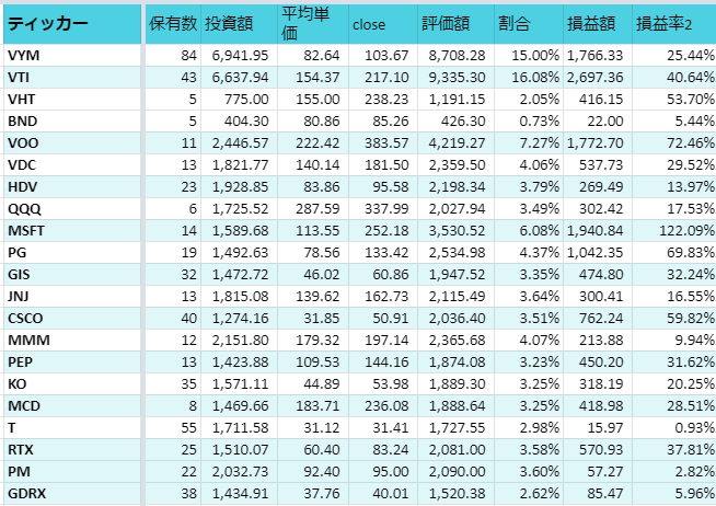 - VOO、VYMは月末の終値で購入